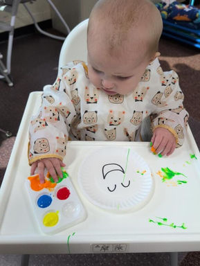 In our infant room, we care for babies ages 4 weeks to 18 months. Our trained and nurturing infant teachers focus on supporting each child's developmental milestones. Their priority each day is to create a unique and stimulating environment of play, music, and language repetition, which includes the use of stories, blocks, table toys, music, and outdoor activities.